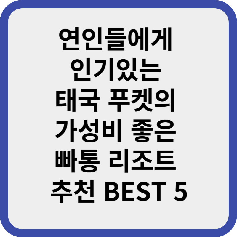 푸켓에서 연인과 함께 즐거운 휴가를 즐기려면 싸고 좋은 리조트를 선택하는 것이 중요합니다. 여기에서는 푸켓에서 가성비 좋은 숙소 중 BEST 5를 소개하고, 각 리조트의 매력적인 특징을 살펴보겠습니다. 푸켓 여행을 계획 중이라면 이 추천 숙소들을 고려해보시기 바랍니다.