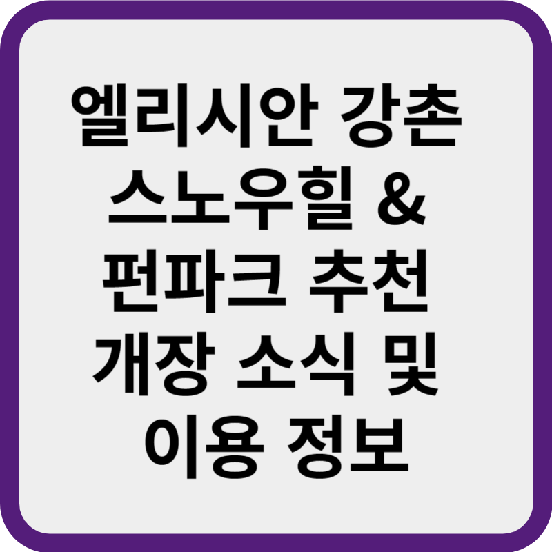 이번 겨울, 엘리시안 강촌 스노우힐 펀파크에서 특별한 추억을 만들어 보세요. 가족들과 함께 계획을 세워 이곳을 방문해 보시면 겨울의 아름다움과 스릴을 느껴보실수 있습니다.
