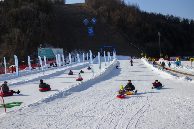 스노우힐 & 펀파크에서의 즐길거리는 튜브썰매, 회전튜브, 플라스틱썰매, 이글루, 에어바운스까지 가득합니다.