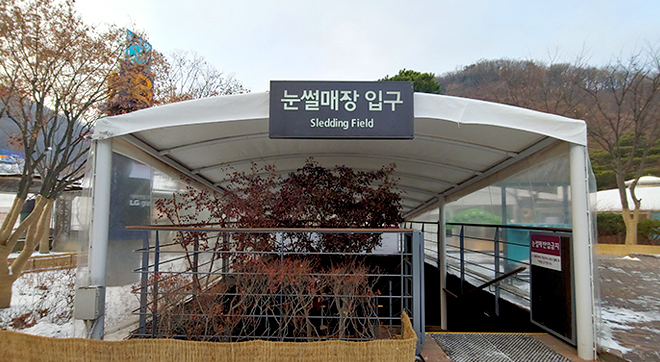 아래의 사진은 눈썰매장 입구의 모습니다.